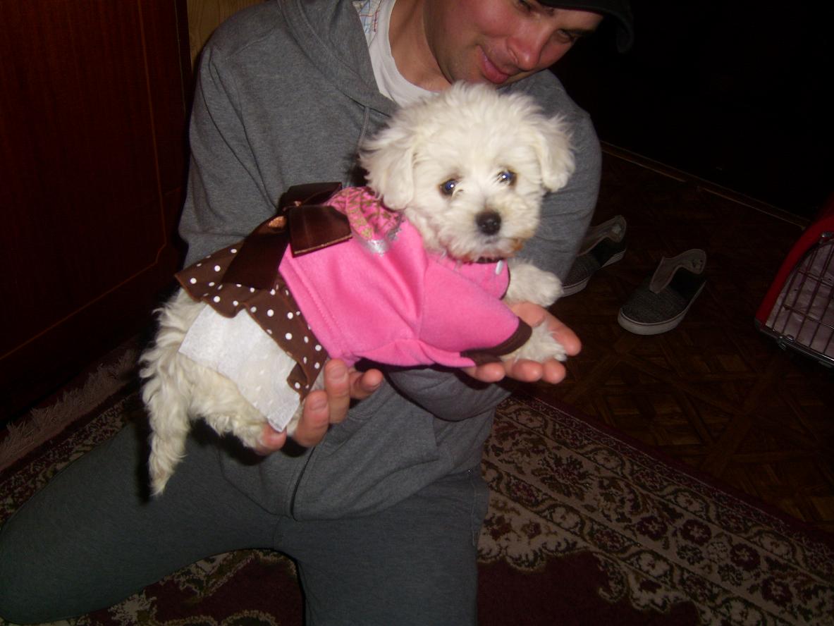 Minunatia asta de catel din pozele trimise este de la dumneavoastra.Sunt foarte multumita de echipa care mi l-a adus, curat si cu fundita rosie.Adaptarea s-a facut foarte rapid,i-a placut noul camin si cel mai mult i-a placut noua ei familie.Am inconjurat-o cu multa dragoste, grija si resposabilitate.